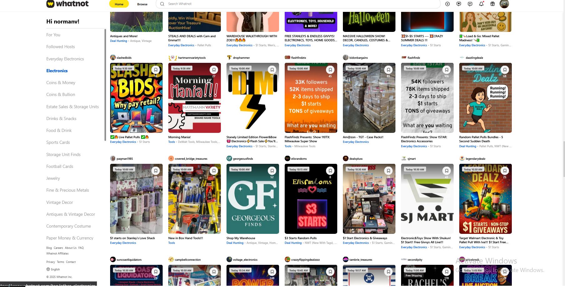 https://whatnot.com/invite/normanv is a e-commerce platform that focuses primarily on collectibles, trading cards, comics, sneakers, and other niche communities. It combines elements of social media, live auctions, and online marketplaces, allowing sellers to host live video auctions and engage directly with buyers in real time.
